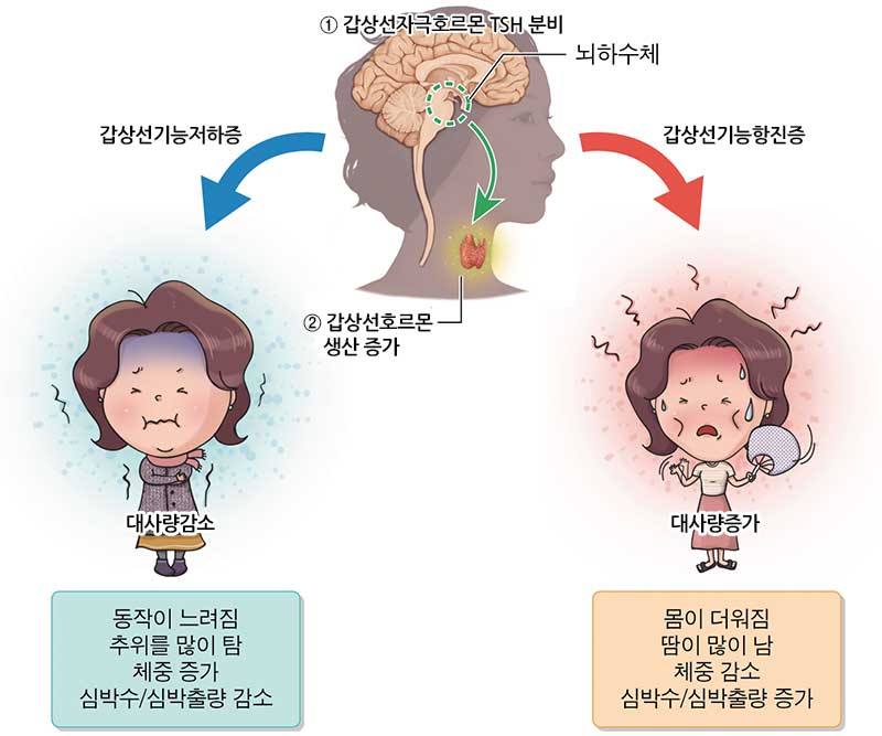 갑상선은 목 울대의 2~3cm에 위치한 나비모양의 기관이다. 여기서 갑상선 호르몬이 분비되는데 갑상선 호르몬은 인체 대사과정을 촉진해서 모든 기관의 기능을 적절하게 유지시켜 주는 역할을 해요.